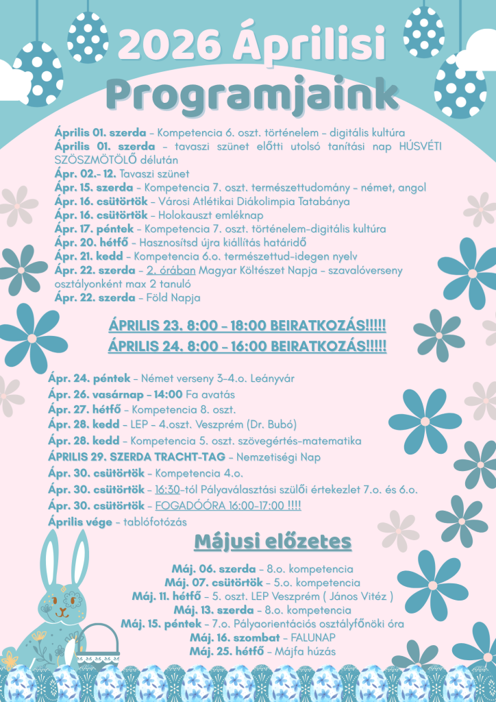 Alább találja a Tatabányai Tankerületi Központ fenntartásában lévő általános iskolák felvételi körzeteit. A dokumentum közvetlenül elérhető, és letölthető erre a szövegre kattintva, valamint a bal oldali menüből a Dokumentumokon belül a Közérdekű információkra kattintva.